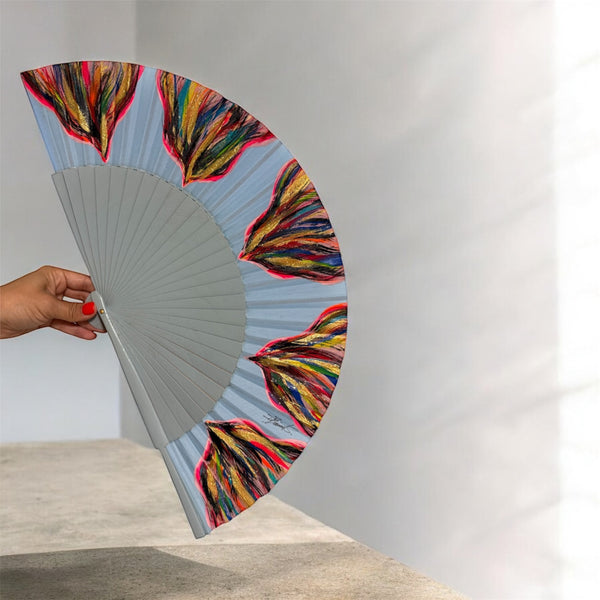 Blue Multicolored KOLORETE Hand Painted Hand Fan